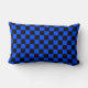 A blue and black checkerboard pattern fills the image, creating a uniform, alternating grid of squares, conveying a bold and geometric feel.