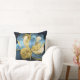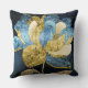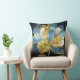 A bold and contemporary floral artwork throw pillow featuring a large stylized flower in shades of deep blue, gold, and soft off-white. The textured, foil-like detailing on the petals and leaves gives the piece a metallic shimmer effect, creating a modern and luxurious aesthetic. Set against a rich navy background, this abstract design highlights the beauty of color, texture, and form, making it an eye-catching statement piece for any style.