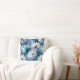 Blue and white floral throw pillow.