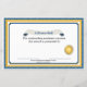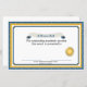 Decoratief blauw, geel en wit academisch gunningscertificaat, met aangepaste tekst. Personaliseer om aan de behoeften van uw klaslokaal of schoolprijsuitreiking te voldoen.
