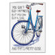 Unieke hand-getrokken Blauwe fiets met de woorden "Je kunt geen geluk kopen maar je kunt een fiets kopen en dat is dichtbij"