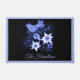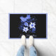 Europese geïnspireerde deurmat in het zwart met een lichtblauwe rand en met afbeeldingen van blauwe en blauwe en witte Edelweiss-bloemen. Pas de aangepaste tekst aan uw behoeften aan.