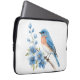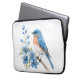 Blue bird with blue flowers laptop sleeve