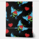 Blue Birds Tattoo Design Rood en Blauw op Zwart Behang