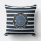 Modern Black, Blue and White Striped Nautical Boat Name Lighthouse Welcome Aboard Sierkussen Navy Blue