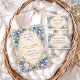 This romantic blueberry garden collection features soft watercolor blueberries paired with delicate white florals and elegant blue bows, all framing a warm parchment-style center. The palette blends ivory, blush, and dusty blue tones for a timeless, storybook aesthetic. Ideal for a sweet, refined celebration with a floral garden feel and classic charm.
