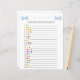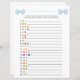 Dit baby shower emoji spel is perfect voor een baby shower of baby sprinkle. Dit spel heeft een waterverf blauwe strik op de voor- en achterkant. Je gasten kunnen deze veel voorkomende zwangerschaps- en baby-gerelateerde zinnen oplossen door de emoticons te decoderen. ANTWOORDSLEUTEL: 1. Baby shower 2. Tweeling 3. Drieling 4. Mama wordt 5. Water breken 6. Ziekenhuis Baby Bag 7. Vervaldatum 8. Baby Fles 9. Reis naar het ziekenhuis 10. Het snoer doorknippen 11. Stomp in de Oven 12. Geen alcohol 13. Meisje of jongen? 14. Aankondiging van zwangerschap 15. Baby Food 16. Brandend hart 17. Ziekte in de ochtend 18. Vlinder kussen 19. Baby Moon 20. Zwangerschap hunkeren. U kunt dit ontwerp personaliseren door te klikken op "Personaliseer deze sjabloon" of als u het lettertype, de kleuren wilt wijzigen of de ontwerpelementen op een andere manier wilt rangschikken, kunt u klikken op "Bewerken met behulp van Design Tool".