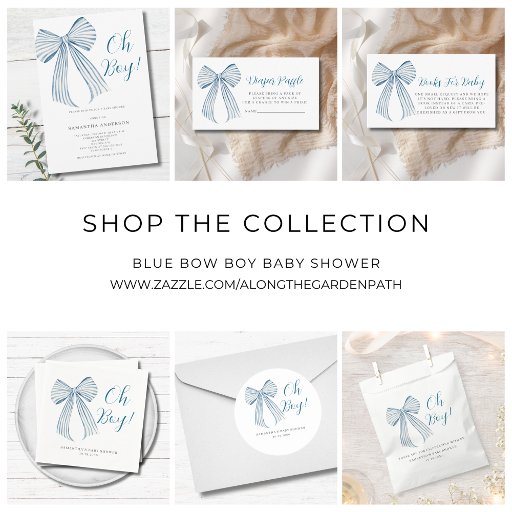Blue bow oh boy baby shower uitnodiging. Gemakkelijk om de tekst te wijzigen. Schattige ontwerp voor een baby shower.