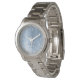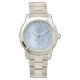 Blue Brushed Metal Silver Glitter Monogram Name Horloge