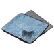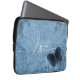 Sweet denim blauwe jeans met indigo butterfly, geperst op florale roos achtergrond, met romantische rollen en bloederige. Het woord Liefde wordt met de hand geschreven in wit over het ontwerp, door iPhone uPhone.