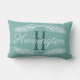Farmhouse elegant blue goot kussens met handgetekende tarwestengellauweren met pompoenen accent en het woord "Farmhouse" in script. De achterkant van de kussen heeft de monogram en naam van uw familie in script.