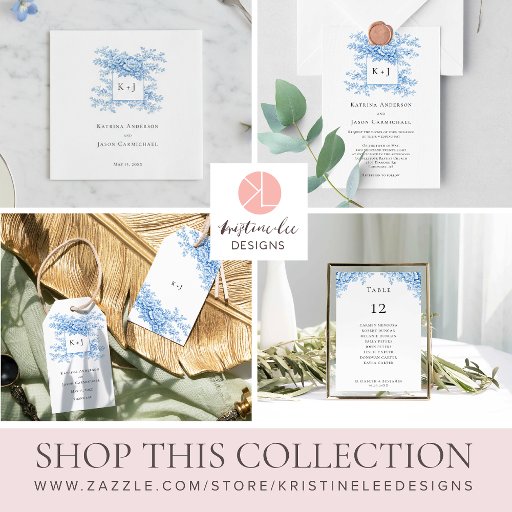 Blue Chinoiserie Floral Wedding MonogramOntworpen door Kristine Lee