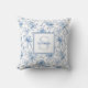 Blue Floral French Toile Monogram Name Kussen