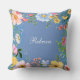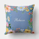 blauw kussen - verkrijgbaar in verschillende maten en stoffen, die u kunt personaliseren met jouw naam, heeft een mooie, kleurrijke bloemrand rondom de randen.