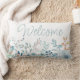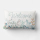 Neem elke kamer op met deze elegante blauwe florale welkomstkussen. Blauwe typografie met trendy zomerflorale waterverf.