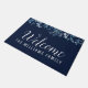 welkome typografie met een familienaam en een waterverf blauw blad. U kunt de kleuren en tekst op deze mat bewerken