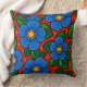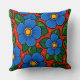 Blue Flowers and Green Leaves on a Red Background Kussen