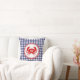 Een kussen met een blauw gingham-design op voor en achter. Rode krab aan de voorkant. Pas uw initiaal aan.