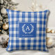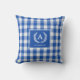Elegant & Rustiek Blauw Gingham Monogram Crest Sierkussen.