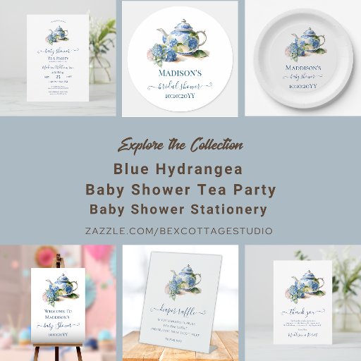 Blue Hydrangea Baby Shower Tea Party Ontworpen door Rebecca Lewis
