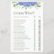 Raad eens wie? De schoenenlade brengt veel plezier en lachen naar je trouwdouche! Het daagt de gasten uit om te raden of de bruid of bruidegom iets eerst in hun relatie heeft gedaan. De pagina is zowel elegant als charmant. Het prachtige ontwerp met een blauwe hydrangeas met meerdere hoeken, delicate wensen van natuurlijk groen in de hedendaagse waterverf, en het coördineren van groene strepen op de rug is perfect voor elke boho, rustische, botanische, florale, tuin, romantische, of formele bruiloft. Het is een perfect spel voor elk type bridale of paren douche.