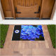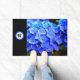 Deze doormat levert verse blauwe hydrangea blooms om je ingang in een gepersonaliseerde mat op te blazen. Pas deze mat aan met je eigen initiaal. Het afbeelding is afkomstig van een originele foto van een felblauwe hydrangea-struik in een mooie zomertuin.
