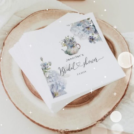 Blue Hydrangeas theepot baby shower dank u Cadeaulabel