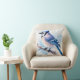 Dit werpkussen is voorzien van een waterverf schilderij van een levendige blauwe jay, neergestreken op een tak die licht is afgestoft met sneeuw. Het opvallende verenkleed van de vogel bevat tinten blauw, zachte lavendel en wit. De achtergrond combineert subtiele spatten blauw, waardoor een dynamische maar serene sfeer ontstaat. Perfect voor vogelliefhebbers!
