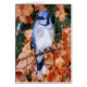 De blauwe Jay-vogel is geperst op een ijzige Oak-boomtak.