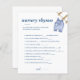 Onderdeel van het Blue Jean Baby collectie, dit Baby Nursery Rhymes spel is eenvoudig + leuk voor alle leeftijden! Maak zoveel mogelijk kinderrijmpjes af. Alle tekst is aanpasbaar om perfect aan te sluiten bij de details van uw gelegenheid ↣ klik gewoon op de knop 'Personaliseren'. Mix met andere spellen binnen het collectie voor een volledige dag plezier! *DE ANTWOORDEN WORDEN WEERGEGEVEN IN "" IN HET SCHERM 'PERSONALISEREN'.