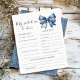 Vier de komst van een kleintje met onze charmante Blue Jean Denim Bow Theme Baby shower voorspellingen en advies sheets! Ze zijn de perfecte manier om de toon te zetten voor een baby shower met een blauw jean-thema, met een heerlijke denim coquette boog op een zacht witte achtergrond.