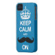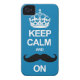 Blue Keep Calm en Carry on Mustache iPhone Case Ca
