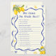 Maak uw belangrijkste knijp vrijgezellenfeest thema extra leuk met deze gepersonaliseerde Blue Lemon Vrijgezellenfeest Wie weet bruid beste spel! Met een fris citroenontwerp is dit spel ideaal voor een feest van de belangrijkste knijp vrijgezellenfeest citroen. Een geweldige aanvulling op uw citroen vrijgezellenfeest thema, het voegt gelach en opwinding aan uw evenement. Ideaal voor citroen thema vrijgezellenfeest ideeën, dit spel past ook citroen Italiaans thema vrijgezellenfeest ideeën en zomer vrijgezellenfeest ideeën!