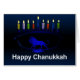 Een blauwe, leeuwige Chanoekah-menorah met verlichte kaarsen. Voeg je eigen tekst toe.