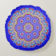 Elegant rond accent gooit kussens gedaan in een koninklijk blauw, met een kleurrijk mandala in het midden.