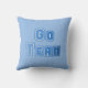 Het accent van de Cheerleader gooit kussen in wit, met blauwe strepen op de boven- en onderkant van de kussen. Grafiek van een blauwe megafon, met zwarte manuscripttekst rond de megafoon, met de opgewekte cheerleaders. De rug van de kussen is stevig blauw, met blauwe grafische tekst die GAAT TEAM lezen. Maakt een geweldig cadeauidee voor elke leeftijdscheerleader.