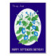 Een bloemenverjaardagstaart voor een tante met een Kaart in september. Het ontwerp is een met de hand geschilderde aquarel, van de hand van Judy Adamson, van helderblauwe Morning Glory bloemen op een ovale witte achtergrond met een diepblauwe rand en elegante witte belettering. Je kunt de inside message personaliseren.