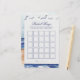 Blue Nautical Coastal Zee Bridal Bingo Game Kaart Dompel uw gasten onder in een rustige ervaring aan zee met ons Blue Coastal Zee Vrijgezellenfeest. Dit elegante ontwerp vangt de serene schoonheid van de kust, met zachte blauwe tinten en delicate elementen aan de kust. Perfect voor een strand vrijgezellenfeest of nautische bruiloft thema, het roept een gevoel van tropische ontsnapping en elegantie aan zee. Opmerking: Klik op "Bewerken" om het te personaliseren met uw informatie.