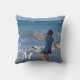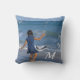 Blue Ocean Beach Meisje Foto Wit Initiaal Kussen