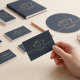 Makkelijk zelf te bewerken en een snelle levering. Het is een mooie kwaliteit papier, de afdruk staat er heel netjes op. De kaartjes worden geleverd in een mooi doosje.