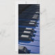 Een close-up van de toetsen van een pianotoetsenbord, die ongebruikelijk gemaakt worden in het kleurblauw, de "witte" toetsen een lichtere blauw dan het diepe blauw van de "zwarte" toetsen en de piano zelf met zijn glanzend laag oppervlak. Een uniek uiterlijk perfect voor mensen in de "bluer"-achtige muziek zoals jazz en blues.