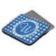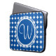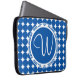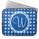 Blauwe stippen in naaste kwarten creëer een secundair patroon van witte sterren. Een grote blauwe cirkel wordt omringd door witte lijnen, terwijl één enkel wit initiaal het centrum graast.