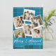 Stuur een kerstcadeautje en viering van je huwelijk met je favoriete foto's en je Blue Pset Instant Multi Photo Merry en Prettige feestdagen Kaart.