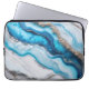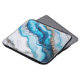 Golven van levendig blauw en aqua stromen over het afbeelding, afgewisseld met glinsterende gouden accenten. De kleuren draaien en mengen, waardoor een gevoel van beweging en elegantie.