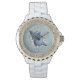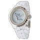 Mooi en Elegant Strass wit emaille horloge met Blue Seashell Aquamarijn Jewel Faux Glitter Design - Great Summer and Beach Mode Accessoire!