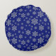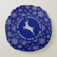 Blue Silver Snowflake Reindeer Rond Kussen