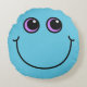Deze kussen hebben een gelukkig blauw emoji gezicht met paarse ogen.