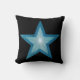 Moderne vormgeving met een "shining" blauwe en witte ster op een zwarte achtergrond, uw keuze aan tekst op de achterzijde. De kussen van de draad met een klantgericht ontwerp voor u om met uw eigen tekst, afbeeldingen en ideeën te personaliseren. Dit is een digitaal afbeelding gemaakt met behulp van originele foto's en digitale technieken en geprint op stof, dat niet schittert of echte enkels bevat.