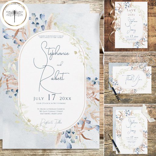 Blue Dried Boho Flowers Wedding SuiteOntworpen door Kathe Santillo
