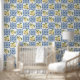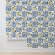 Elegant watercolor french country blue tile and lemon pattern wallpaper to decorate your home with grace.